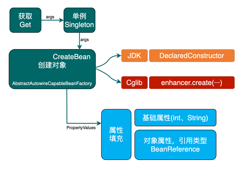 - 另外是填充属性信息还包括了 Bean 的对象类型,也就是需要再定义一个 BeanReference,里面其实就是一个简单的 Bean