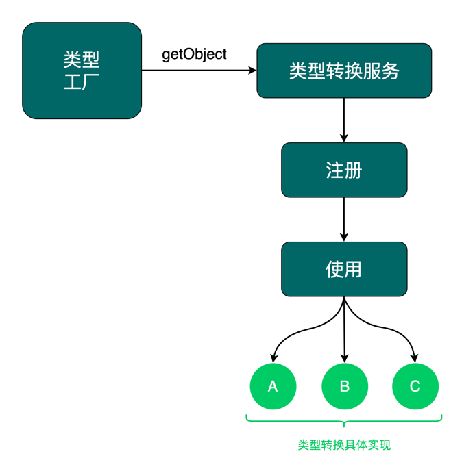 此处实现的类型转换操作如果只是功能性的开发,就像自己承接的需求那样,可能只是简单的if判断就搞定了,但是放在一个成熟的框架中要考虑的是可复用性、